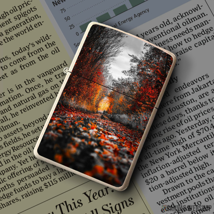 Metalni vetrootporni upaljač sa slikom Jesen Suma kao dobar poklon ili vaš pratilac za sve prilike!