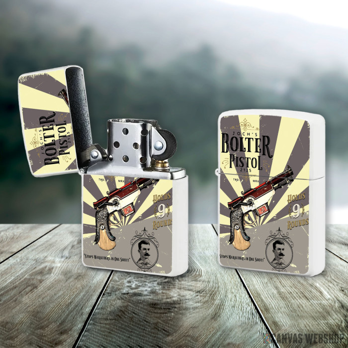 Metalni vetrootporni upaljač sa slikom Jochs Bolter Pistol kao dobar poklon ili vaš pratilac za sve prilike!