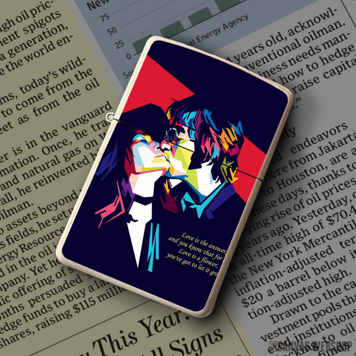 Metalni vetrootporni upaljač sa slikom John Lennon Yoko Ono kao dobar poklon ili vaš pratilac za sve prilike!