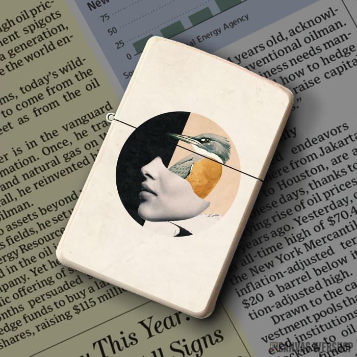 Metalni vetrootporni upaljač sa slikom Kolaž devojka i ptica kao dobar poklon ili vaš pratilac za sve prilike!