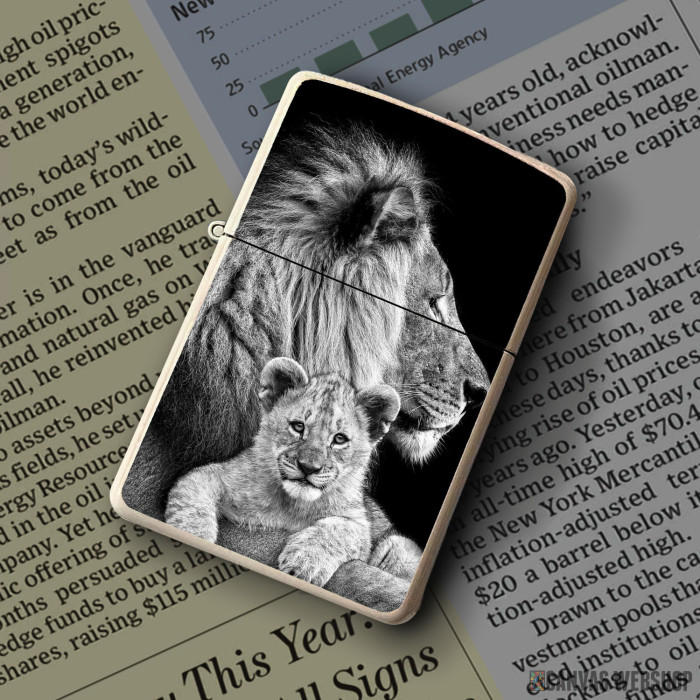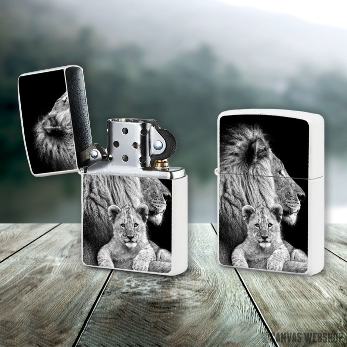 Metalni vetrootporni upaljač sa slikom Lav sa mladunčetom kao dobar poklon ili vaš pratilac za sve prilike!