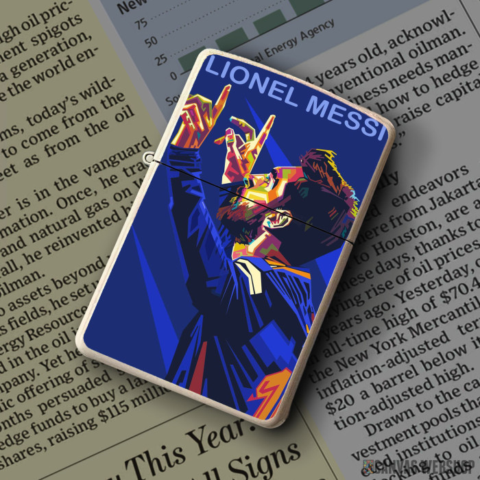 Metalni vetrootporni upaljač sa slikom Lionel Messi Pop Art VI kao dobar poklon ili vaš pratilac za sve prilike!