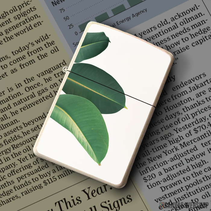 Metalni vetrootporni upaljač sa slikom Listovi fikusa kao dobar poklon ili vaš pratilac za sve prilike!