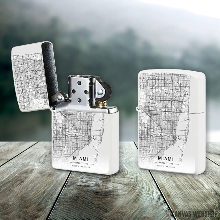Metalni vetrootporni upaljač sa slikom Majami mapa - white kao dobar poklon ili vaš pratilac za sve prilike!