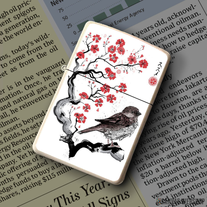 Metalni vetrootporni upaljač sa slikom Mali vrabac na grani kao dobar poklon ili vaš pratilac za sve prilike!