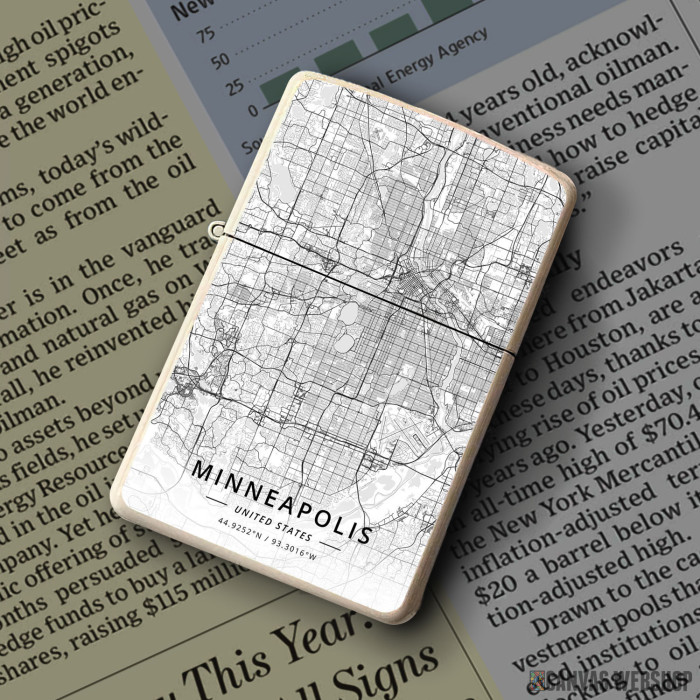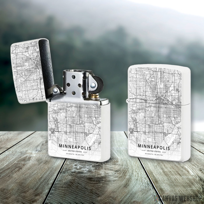 Metalni vetrootporni upaljač sa slikom Mineapolis mapa - white kao dobar poklon ili vaš pratilac za sve prilike!