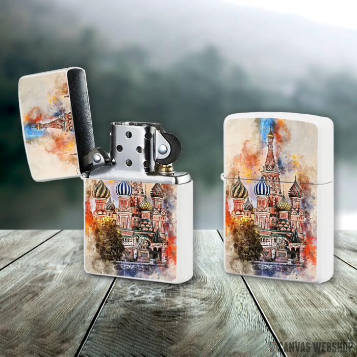 Metalni vetrootporni upaljač sa slikom Moscow in Watercolor kao dobar poklon ili vaš pratilac za sve prilike!