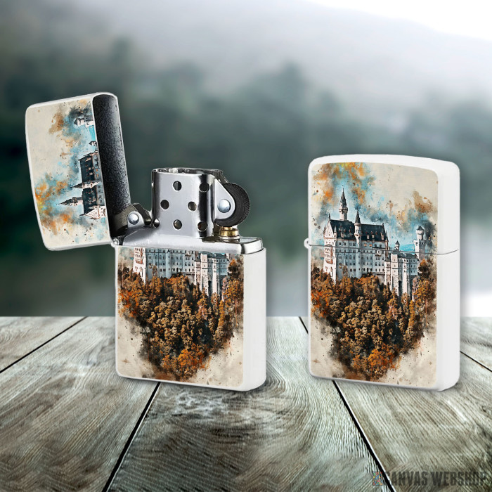 Metalni vetrootporni upaljač sa slikom Neuschwanstein Watercolor kao dobar poklon ili vaš pratilac za sve prilike!