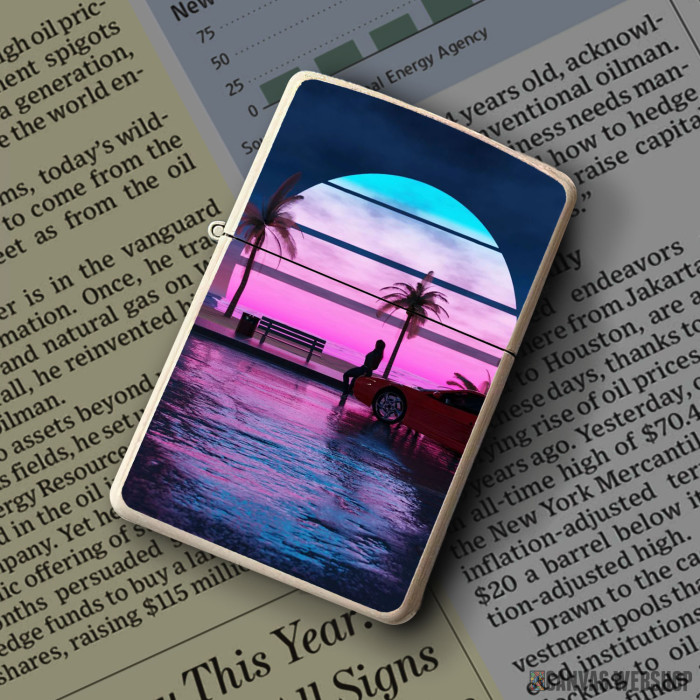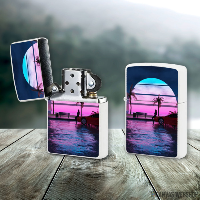 Metalni vetrootporni upaljač sa slikom Outrun Beach Sunset kao dobar poklon ili vaš pratilac za sve prilike!