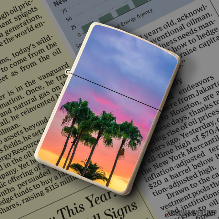 Metalni vetrootporni upaljač sa slikom Palm Trees On Purple Sky kao dobar poklon ili vaš pratilac za sve prilike!