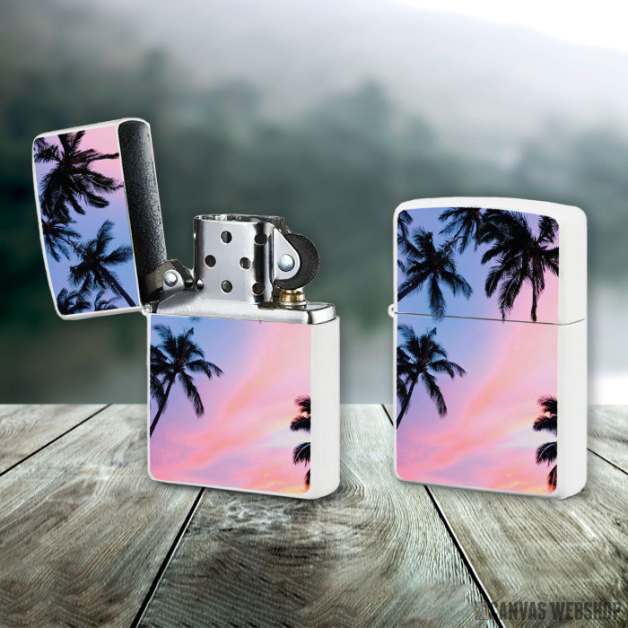 Metalni vetrootporni upaljač sa slikom Palm Trees Purple Sky kao dobar poklon ili vaš pratilac za sve prilike!