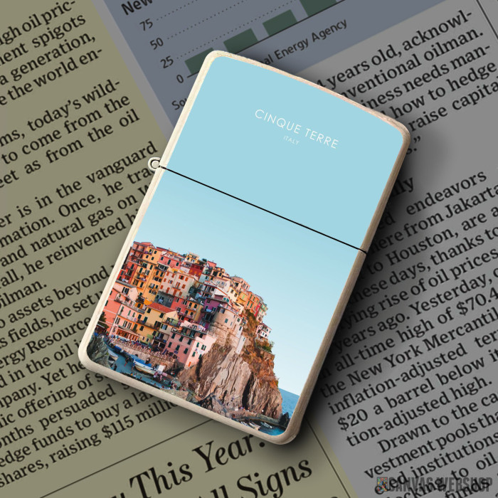 Metalni vetrootporni upaljač sa slikom Pet Zemalja Italija kao dobar poklon ili vaš pratilac za sve prilike!