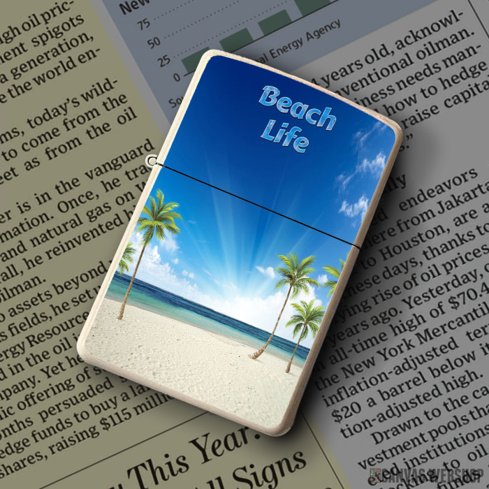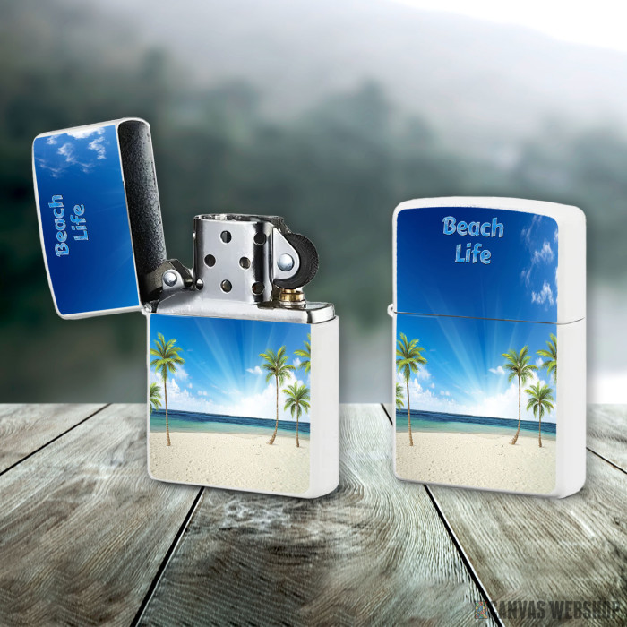 Metalni vetrootporni upaljač sa slikom Sea Palm Beach Life kao dobar poklon ili vaš pratilac za sve prilike!