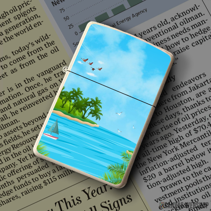 Metalni vetrootporni upaljač sa slikom Seaside Beach Summer Palm kao dobar poklon ili vaš pratilac za sve prilike!