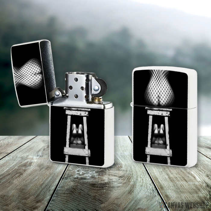 Metalni vetrootporni upaljač sa slikom Sensual woman sitting rear kao dobar poklon ili vaš pratilac za sve prilike!