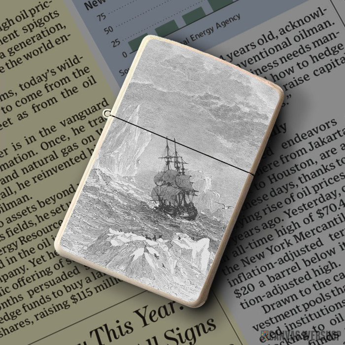 Metalni vetrootporni upaljač sa slikom Ship Sailing The Arctic kao dobar poklon ili vaš pratilac za sve prilike!