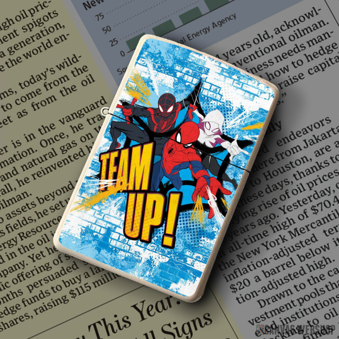 Metalni vetrootporni upaljač sa slikom Spider Team Up kao dobar poklon ili vaš pratilac za sve prilike!