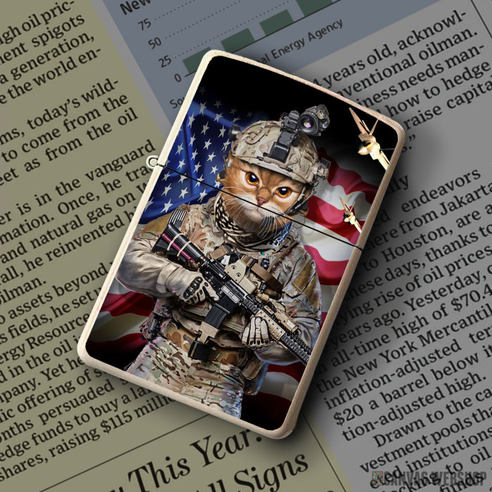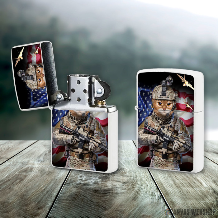 Metalni vetrootporni upaljač sa slikom Tabby Cat Elite Soldier kao dobar poklon ili vaš pratilac za sve prilike!