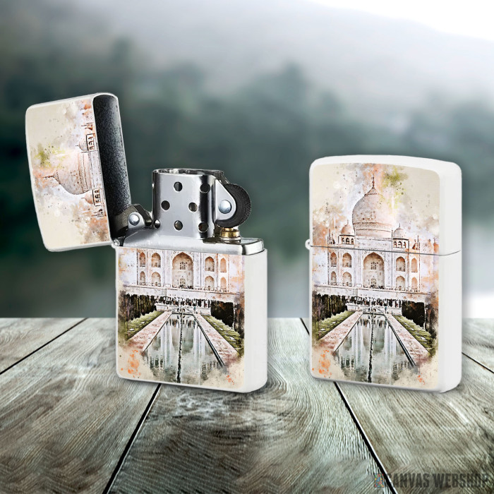 Metalni vetrootporni upaljač sa slikom Taj Mahal in Watercolor kao dobar poklon ili vaš pratilac za sve prilike!