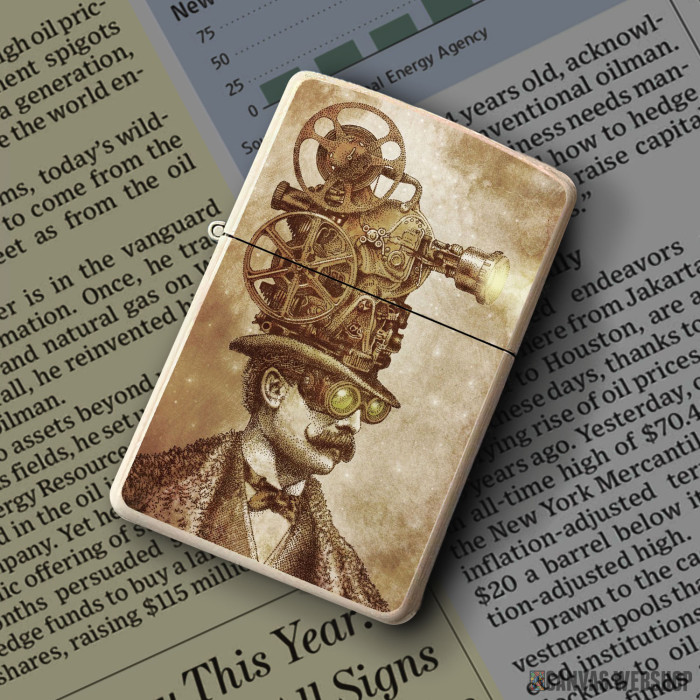 Metalni vetrootporni upaljač sa slikom The Projectionist sepia kao dobar poklon ili vaš pratilac za sve prilike!
