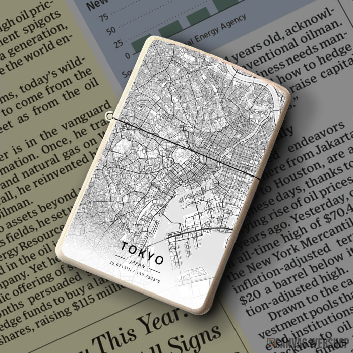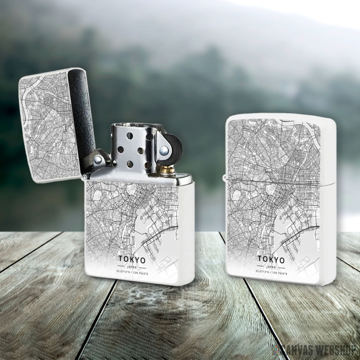 Metalni vetrootporni upaljač sa slikom Tokio mapa - white kao dobar poklon ili vaš pratilac za sve prilike!