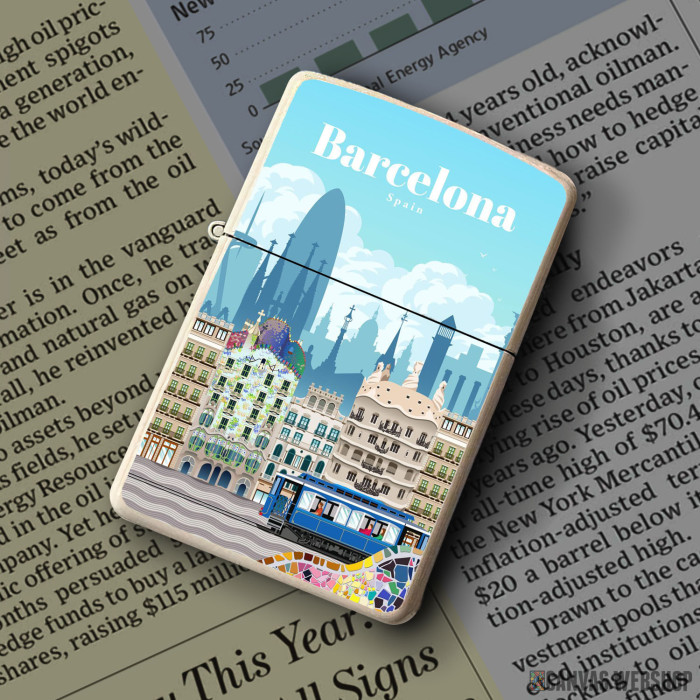 Metalni vetrootporni upaljač sa slikom Travel to Barcelona kao dobar poklon ili vaš pratilac za sve prilike!