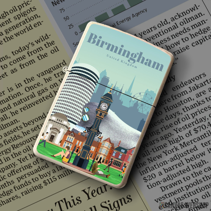 Metalni vetrootporni upaljač sa slikom Travel to Birmingham kao dobar poklon ili vaš pratilac za sve prilike!