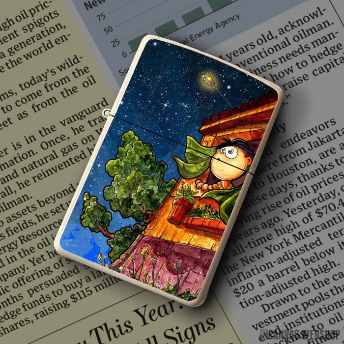 Metalni vetrootporni upaljač sa slikom UFO KID kao dobar poklon ili vaš pratilac za sve prilike!