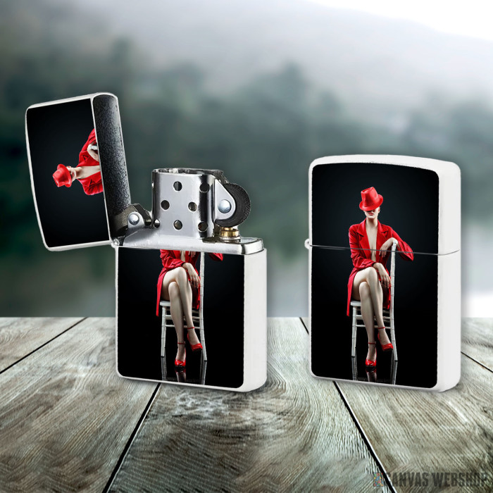Metalni vetrootporni upaljač sa slikom Woman in red kao dobar poklon ili vaš pratilac za sve prilike!