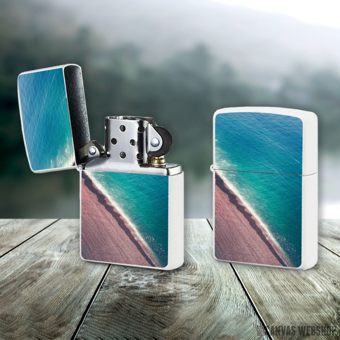 Metalni vetrootporni upaljač sa slikom Beach Aerial kao dobar poklon ili vaš pratilac za sve prilike!