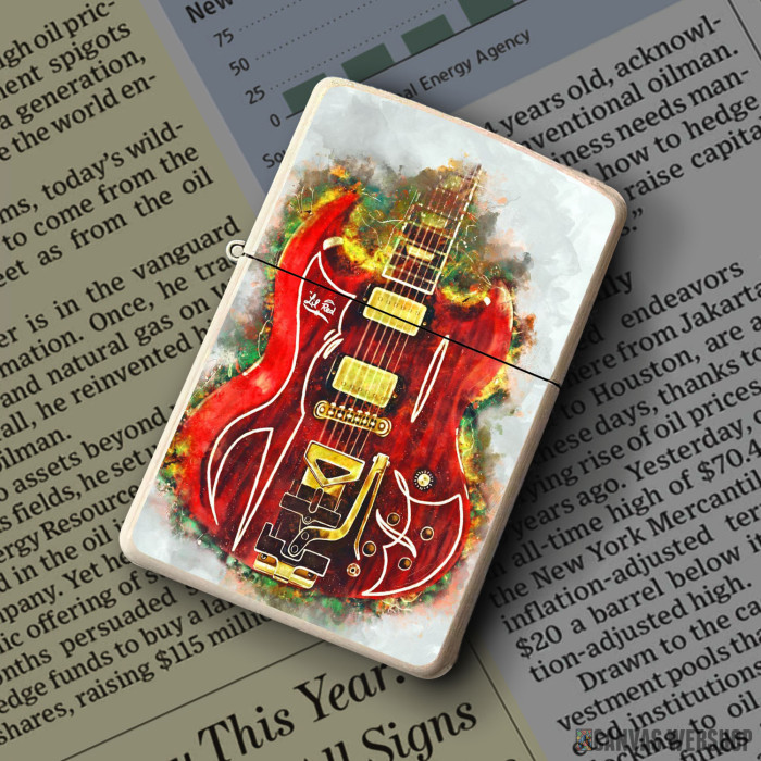 Metalni vetrootporni upaljač sa slikom Billy Gibbons red guitar kao dobar poklon ili vaš pratilac za sve prilike!