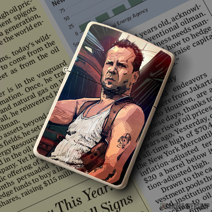 Metalni vetrootporni upaljač sa slikom Brus Vilis kao dobar poklon ili vaš pratilac za sve prilike!