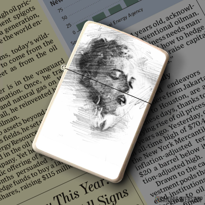 Metalni vetrootporni upaljač sa slikom Merlin Monro crtež olovkom kao dobar poklon ili vaš pratilac za sve prilike!