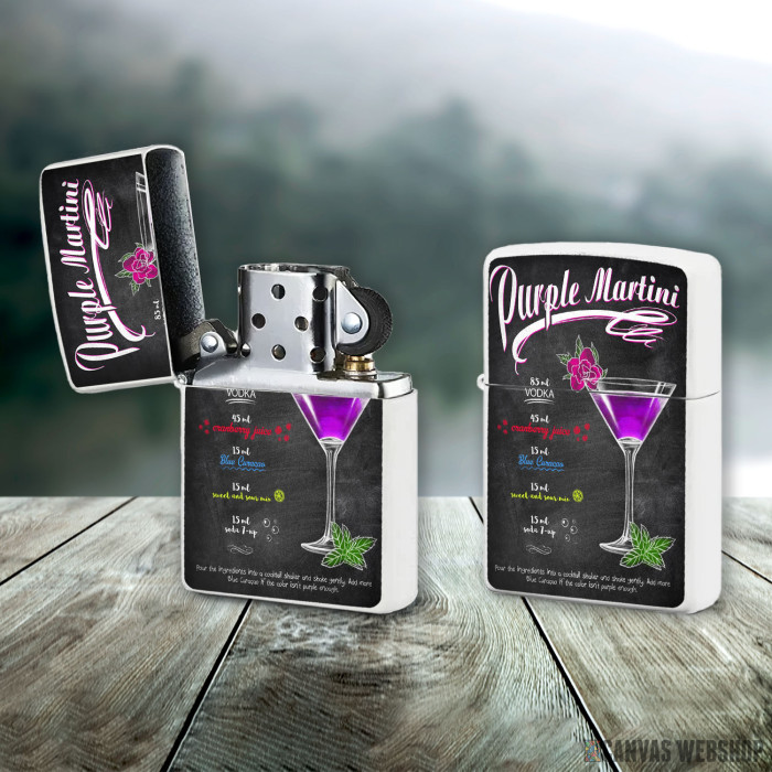 Metalni vetrootporni upaljač sa slikom Purple Martini kao dobar poklon ili vaš pratilac za sve prilike!