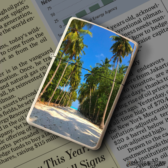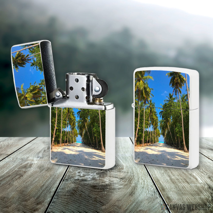 Metalni vetrootporni upaljač sa slikom Sandy Palm Way To The Sea kao dobar poklon ili vaš pratilac za sve prilike!