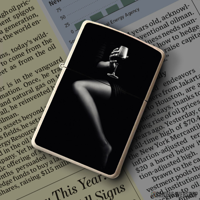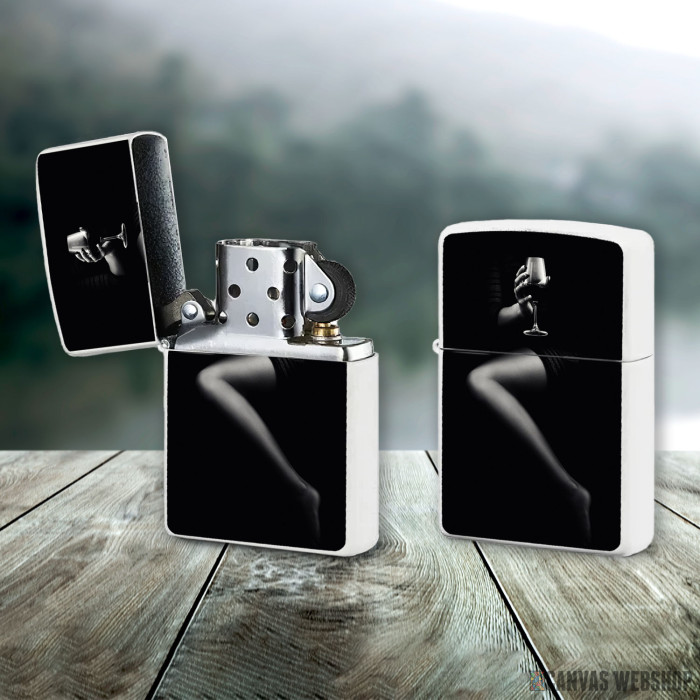 Metalni vetrootporni upaljač sa slikom Woman holding red wine kao dobar poklon ili vaš pratilac za sve prilike!
