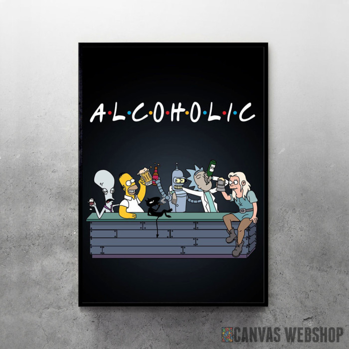 Alkoholičari je poster odštampan na papiru koji uokviruje elegantan drveni ram sa staklom. Uramljeni poster je dostupan u različitim dimenzijama.