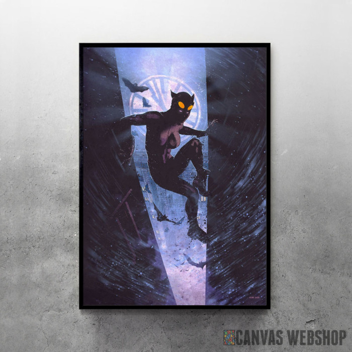 Catwoman je poster odštampan na papiru koji uokviruje elegantan drveni ram sa staklom. Uramljeni poster je dostupan u različitim dimenzijama.