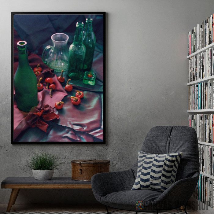 Flaše i Papričice je poster odštampan na papiru koji uokviruje elegantan drveni ram sa staklom. Uramljeni poster je dostupan u različitim dimenzijama.