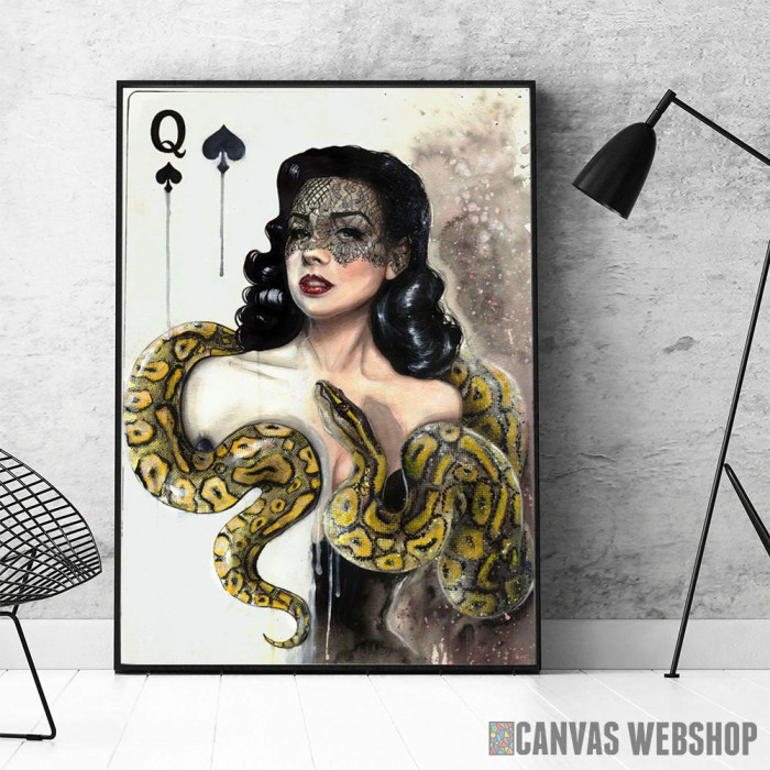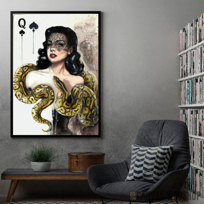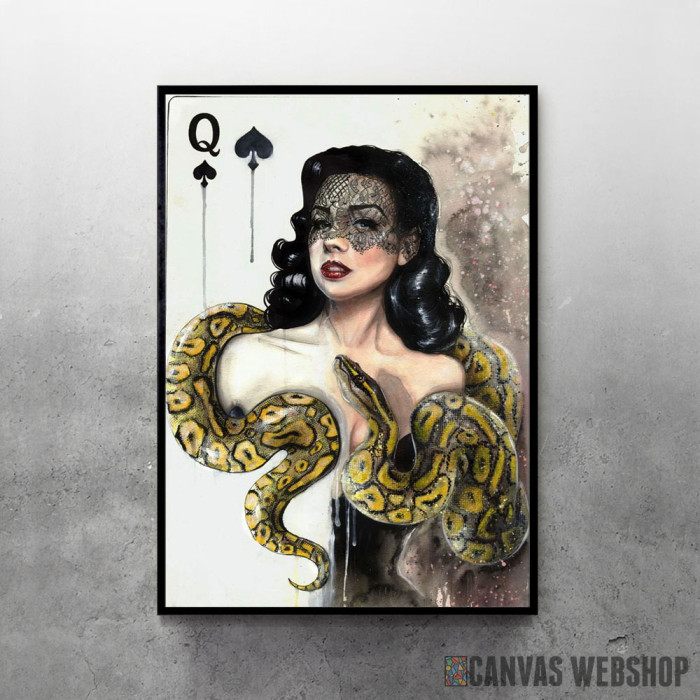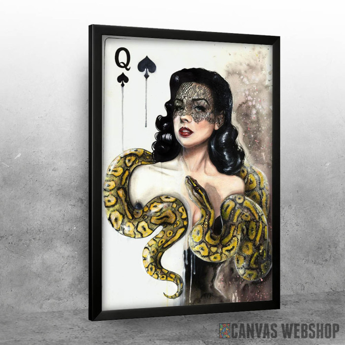 Kraljica pik je poster odštampan na papiru koji uokviruje elegantan drveni ram sa staklom. Uramljeni poster je dostupan u različitim dimenzijama.