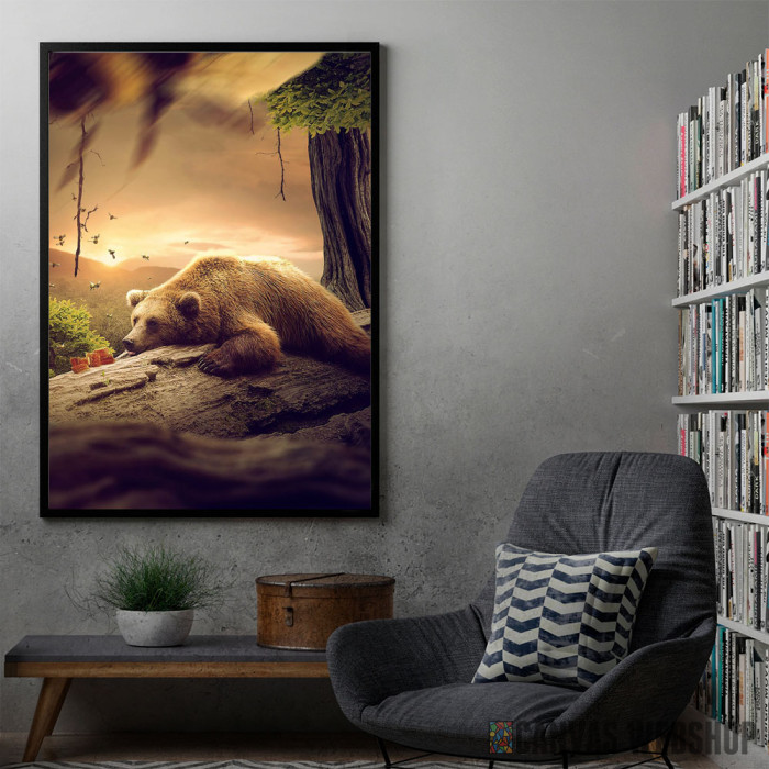 Medved je poster odštampan na papiru koji uokviruje elegantan drveni ram sa staklom. Uramljeni poster je dostupan u različitim dimenzijama.