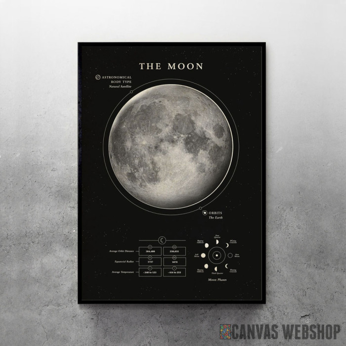 Mesec je poster odštampan na papiru koji uokviruje elegantan drveni ram sa staklom. Uramljeni poster je dostupan u različitim dimenzijama.