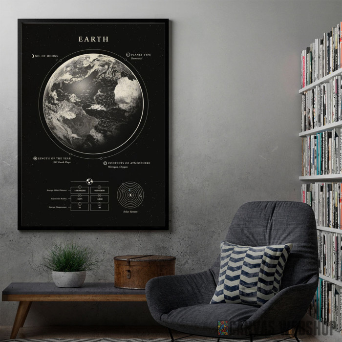 Planeta Zemlja je poster odštampan na papiru koji uokviruje elegantan drveni ram sa staklom. Uramljeni poster je dostupan u različitim dimenzijama.