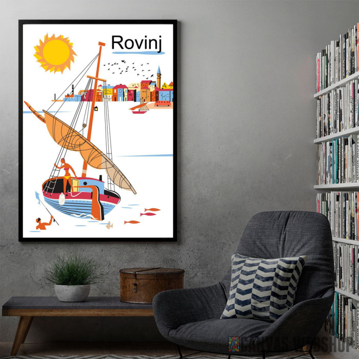 Rovinj je poster odštampan na papiru koji uokviruje elegantan drveni ram sa staklom. Uramljeni poster je dostupan u različitim dimenzijama.