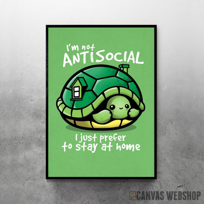 Stay at home turtle je poster odštampan na papiru koji uokviruje elegantan drveni ram sa staklom. Uramljeni poster je dostupan u različitim dimenzijama.