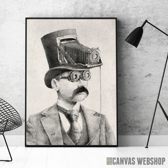 The Photographer je poster odštampan na papiru koji uokviruje elegantan drveni ram sa staklom. Uramljeni poster je dostupan u različitim dimenzijama.