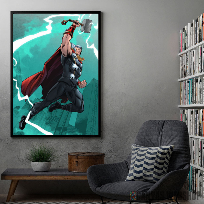 Thor cartoon je poster odštampan na papiru koji uokviruje elegantan drveni ram sa staklom. Uramljeni poster je dostupan u različitim dimenzijama.