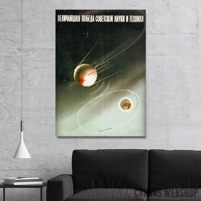 Veličanstvena pobeda sovjetske nauke i tehnologije je slika odštampana na kvalitetnom pamučnom platnu koje je zategnuto na ram od bukovog drveta. Slika Veličanstvena pobeda sovjetske nauke i tehnologije je dostupna u različitim dimenzijama.