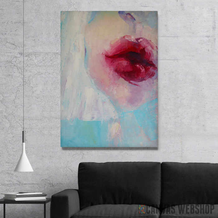 Velike usne je slika odštampana na kvalitetnom pamučnom platnu koje je zategnuto na ram od bukovog drveta. Slika Velike usne je dostupna u različitim dimenzijama.