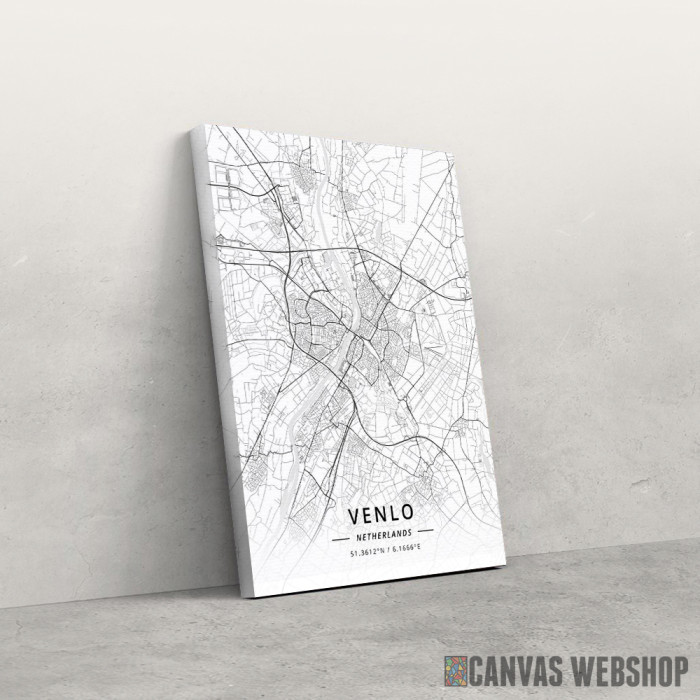 Venlo mapa - white je slika odštampana na kvalitetnom pamučnom platnu koje je zategnuto na ram od bukovog drveta. Slika Venlo mapa - white je dostupna u različitim dimenzijama.